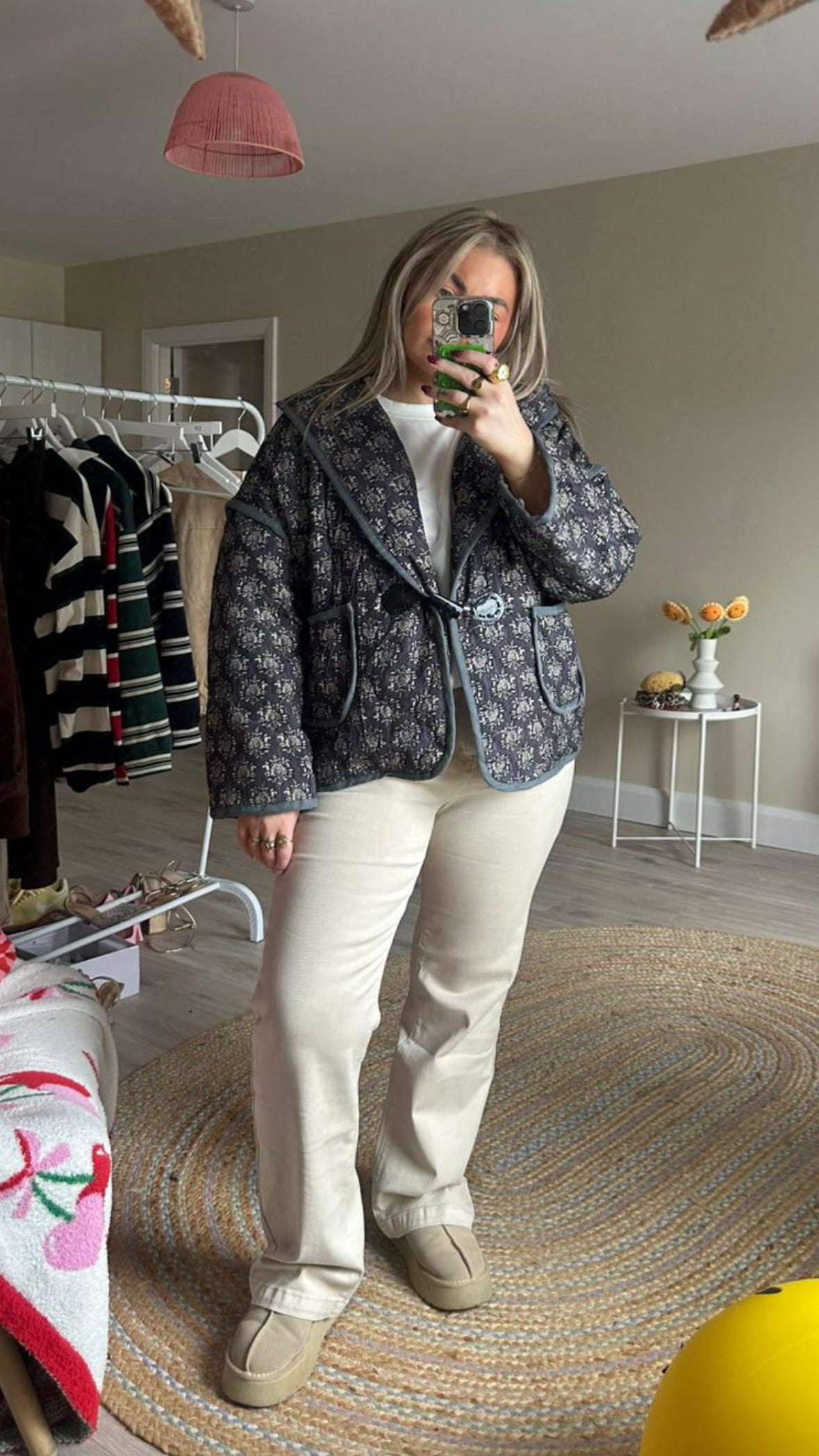 Add a splash of vintage charm to your wardrobe with this navy/grey paisley hooded jacket. Featuring a playful toggle closure, it’s perfect for layering on cooler days while keeping your look effortlessly retro. Embrace those good vibes and stand out with a jacket that’s as fun as it is functional.